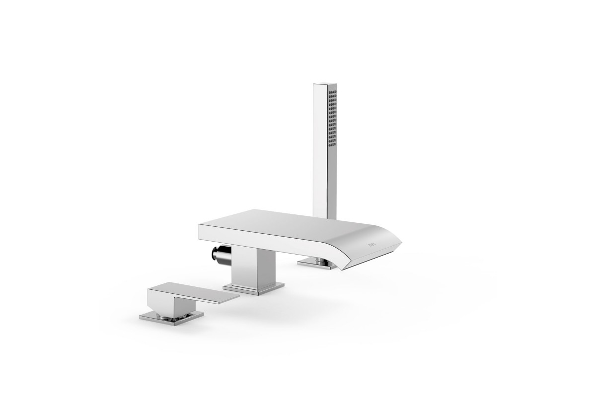 10616102 Tres Cuadro Смеситель для ванны на 3 отв,излив каскад, с ручным душем