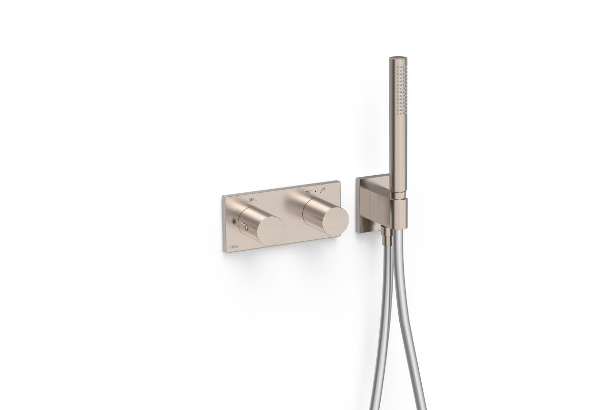 30735201AC Tres Встроенный в стену термостат на 2 источника с ручным душем, цвет суперсталь