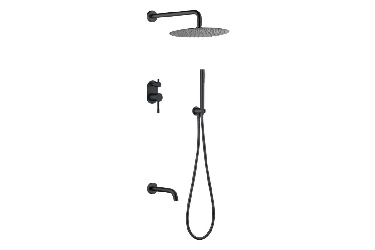 Boheme Смеситель встроенный + верхний 30см+ ручной душ,налив воды Uno. Чёрный 464-2-B