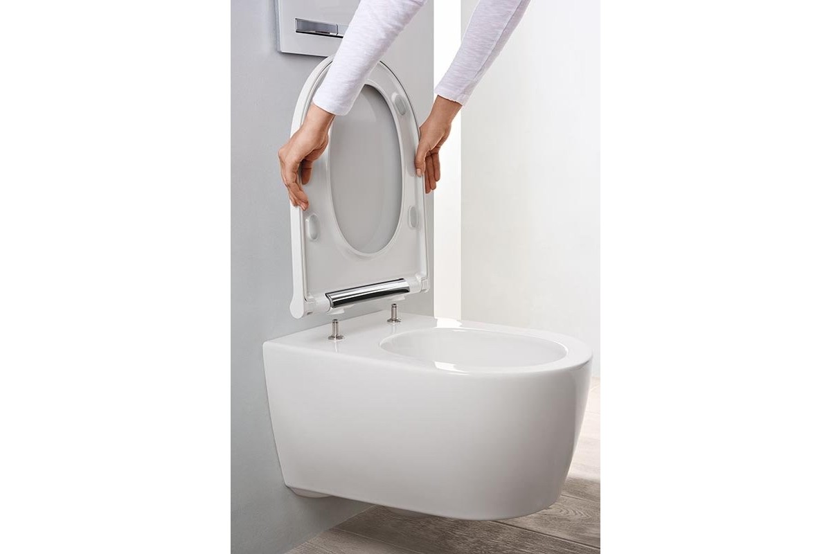 500.202.01.1 Подвесной унитаз Geberit ONE, закрытая форма, TurboFlush, с сиденьем, хром