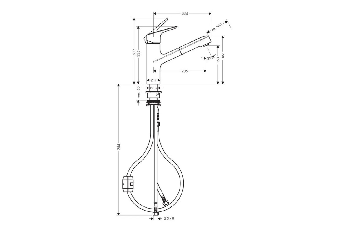 71842000 Hansgrohe Focus M43 Кухонный смеситель однорычажный, 150, с вытяжным изливом, 1jet хром
