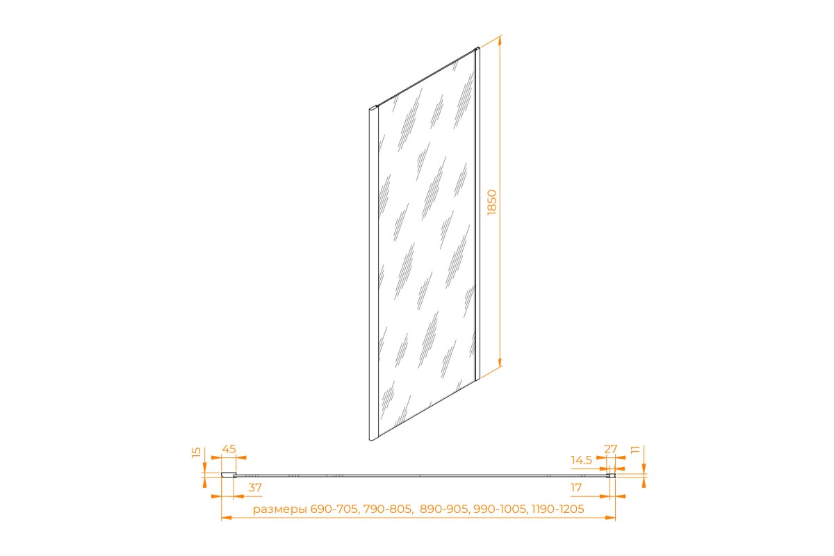 Боковую стенку дверь RGW Z-050-1-B прозрачное cтекло цвет профиля 6 мм 352205100-14