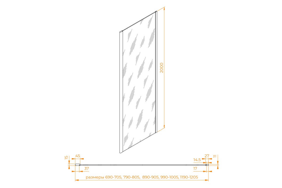 Боковую стенку дверь RGW Z-050-3-B прозрачное cтекло цвет профиля 6 мм 352205309-14