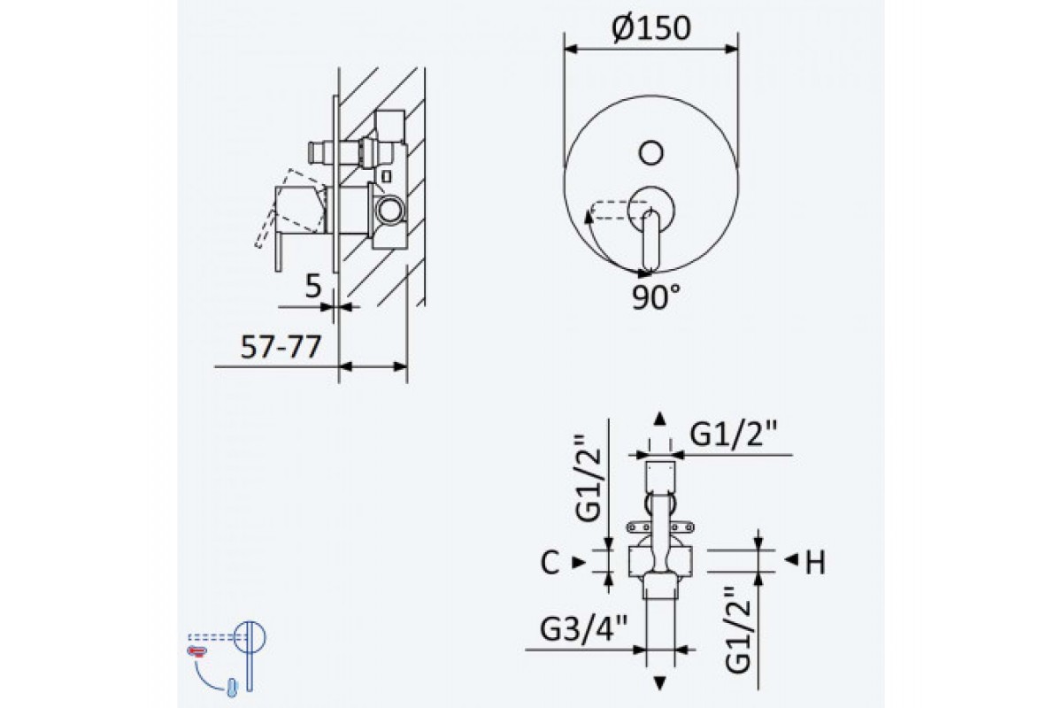 Смеситель скрытого монтажа Leaf Night Sky 167 130 1NS (на 2 потока)