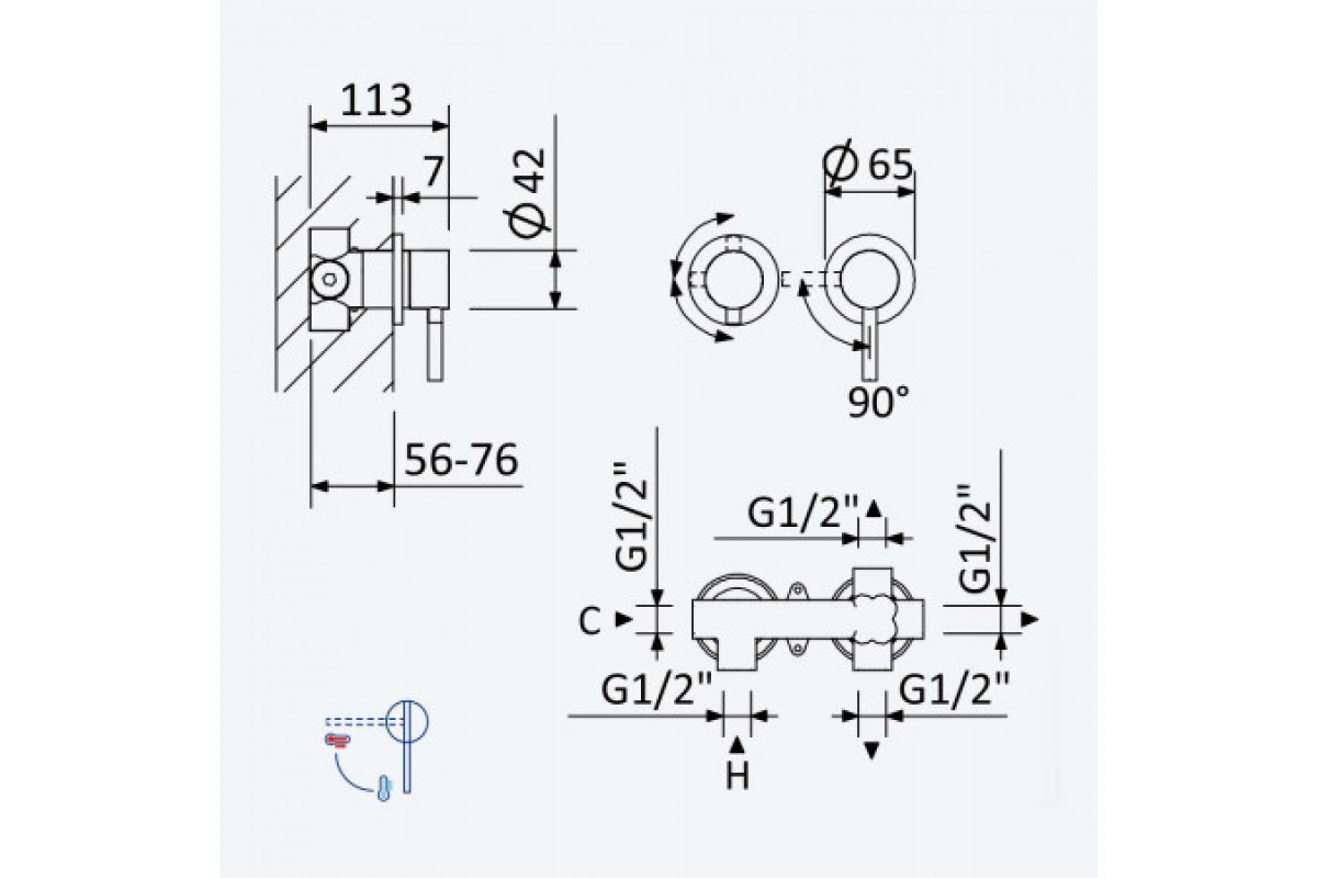 Смеситель скрытого монтажа, на 3 потока Lusitano 107 142 1CR Chrome
