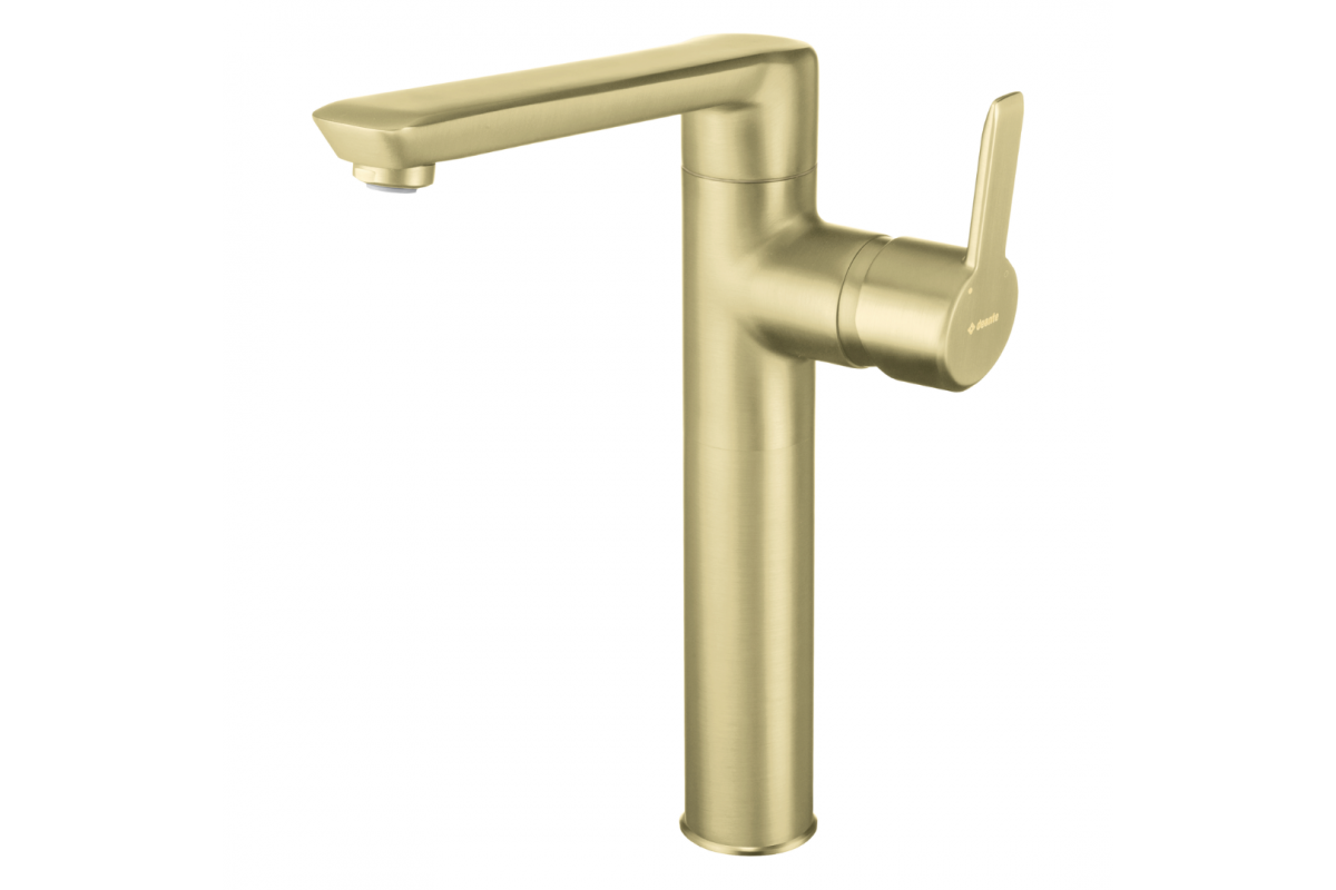 Deante Arnika Смеситель для раковины высокий, брашированное золото