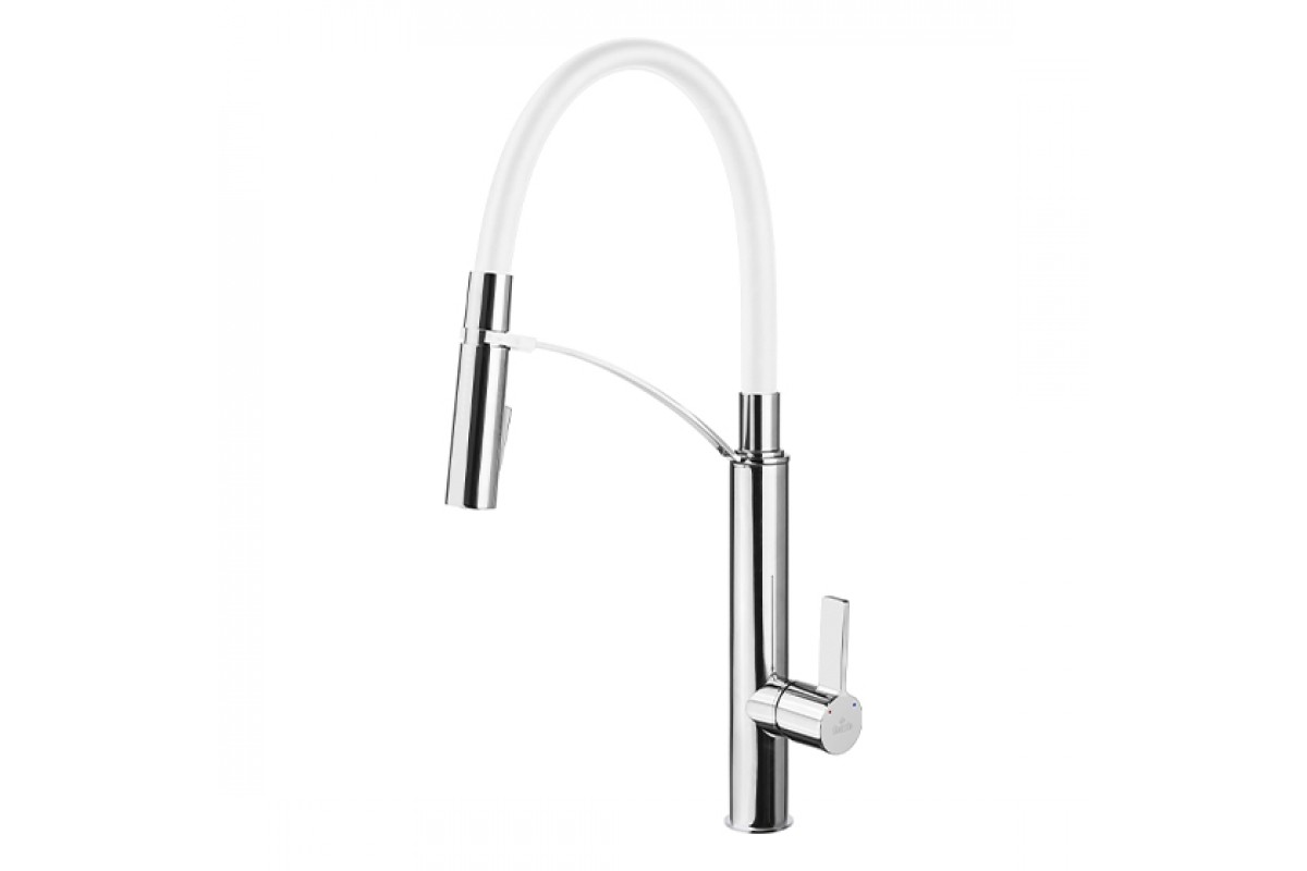 Deante Gerbera Смеситель для мойки с вытягивающимся изливом, белый/хром