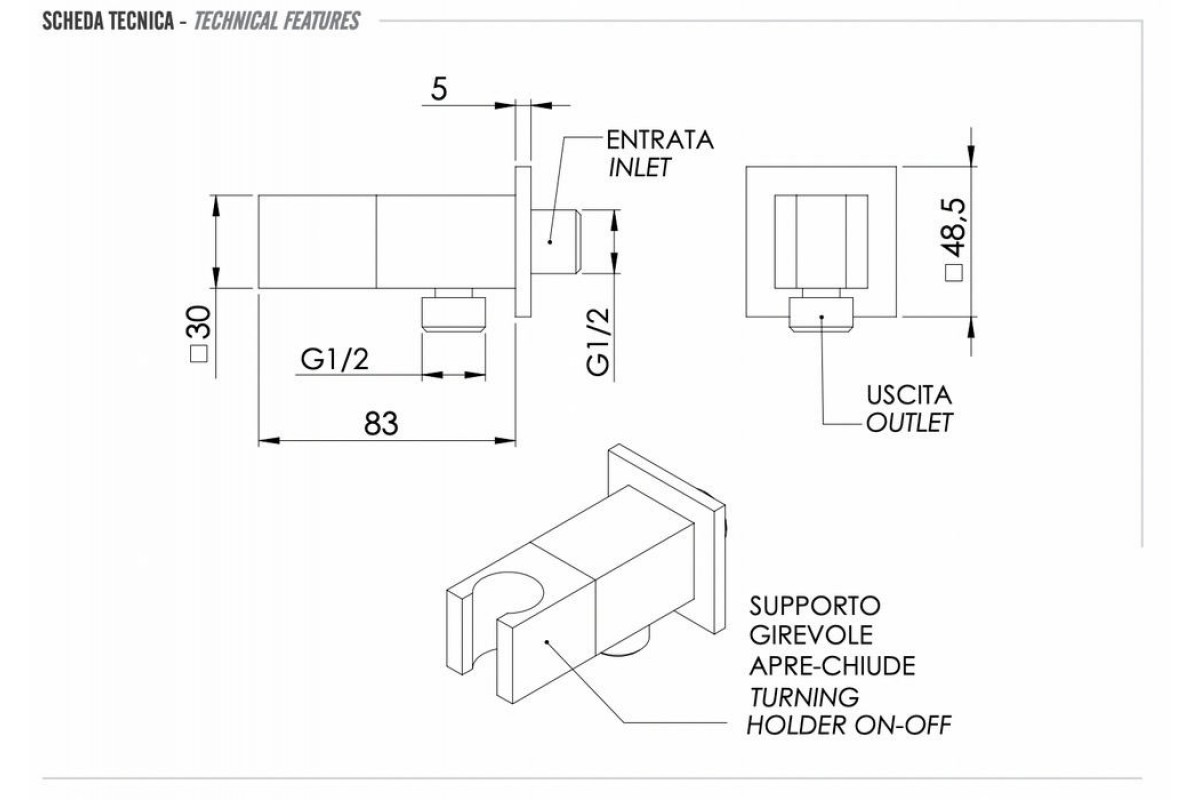 Держатель ручного душа с подключением и запорным вентелем Remer 338Q