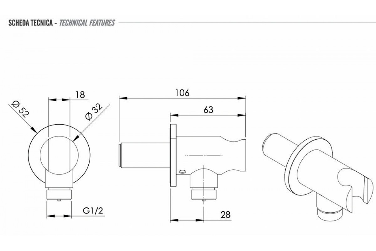 Держатель ручного душа с подключением Remer INOX SS337M, нержавеющая сталь