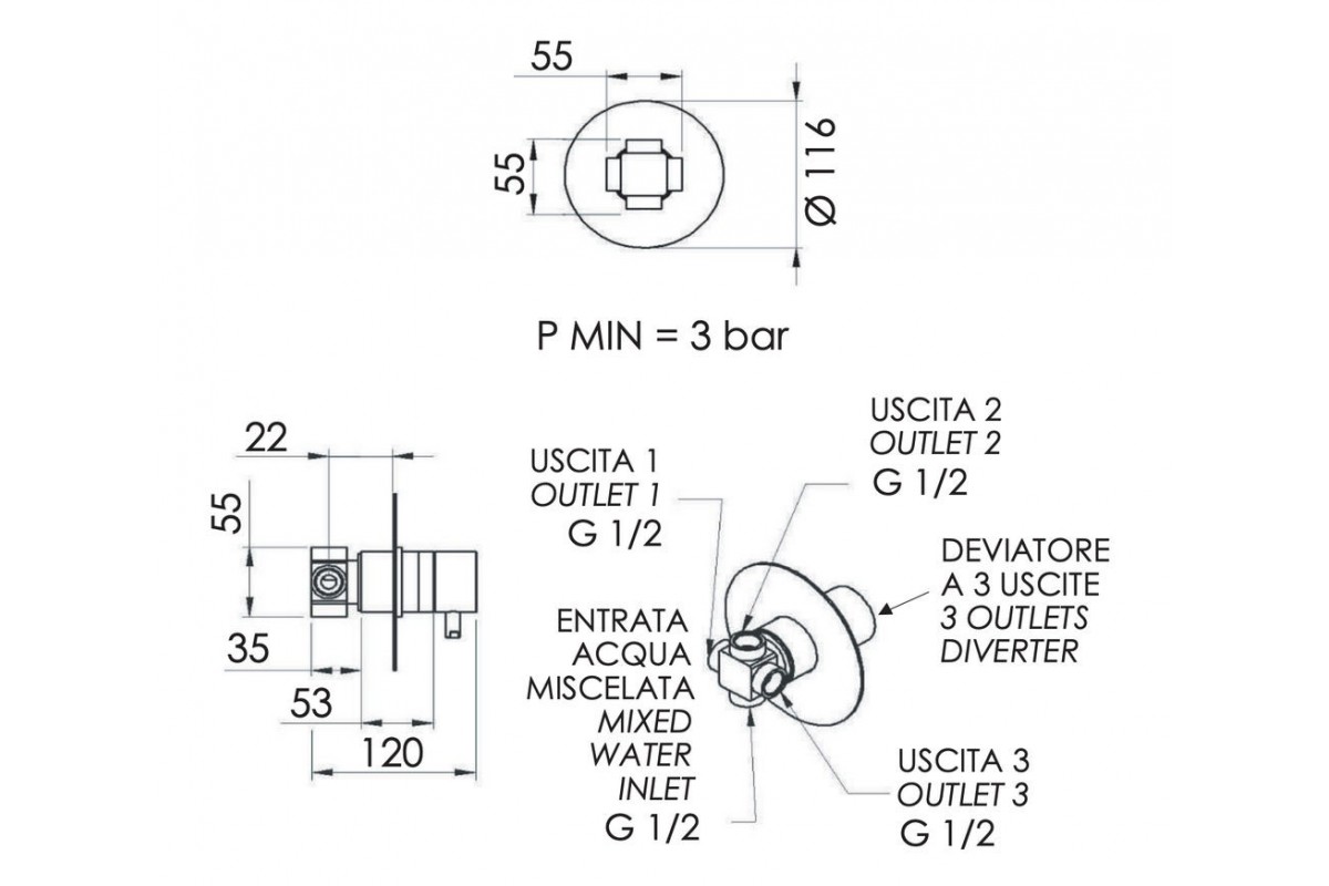 Дивертер на 3 выхода Remer X Style N93DEV3