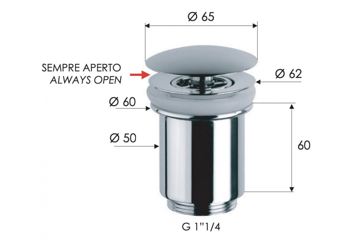 Донный клапан незапираемый без перелива 1”1/4 Remer 907114