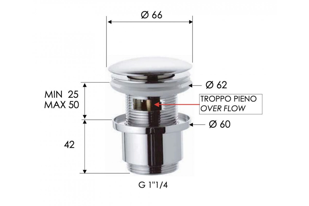 Донный клапан с переливом 1”1/4 Remer 905CC2114BO, белый матовый