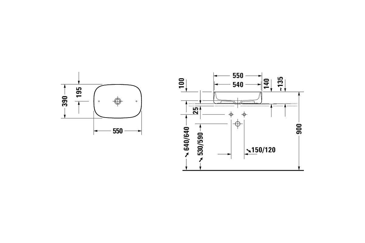 DURAVIT 2373551379 ZENCHA Раковина 550х390 мм, шлифованная, без перелива, сливной клапан с керамической крышкой в комплекте, вкл.крепление Anthrazit Matt