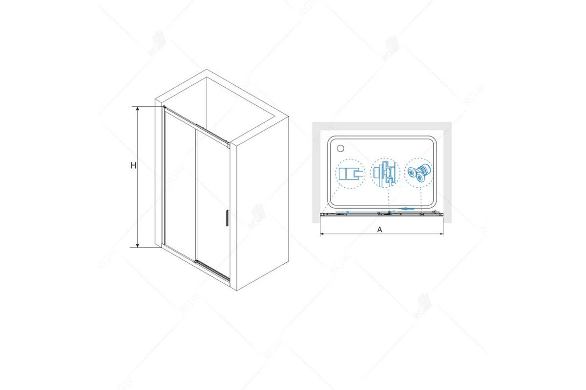 Раздвижная душевая дверь RGW LE-12-B 150*195 прозрачное стекло 6 мм 34121215-14
