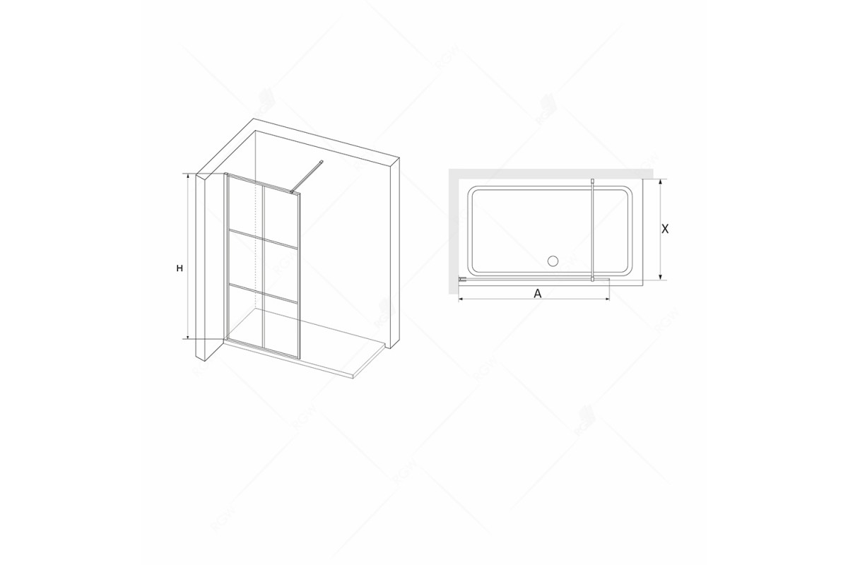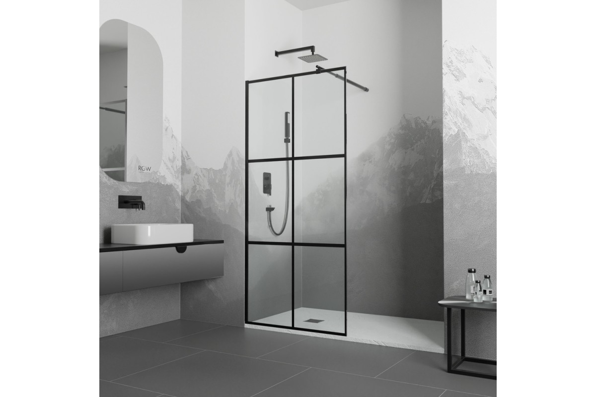 Душевая перегородка RGW WA-011B неподвижное Walk In cтекло прозрачное(Принт), 8 мм 100*200 чёрный 35101100-84