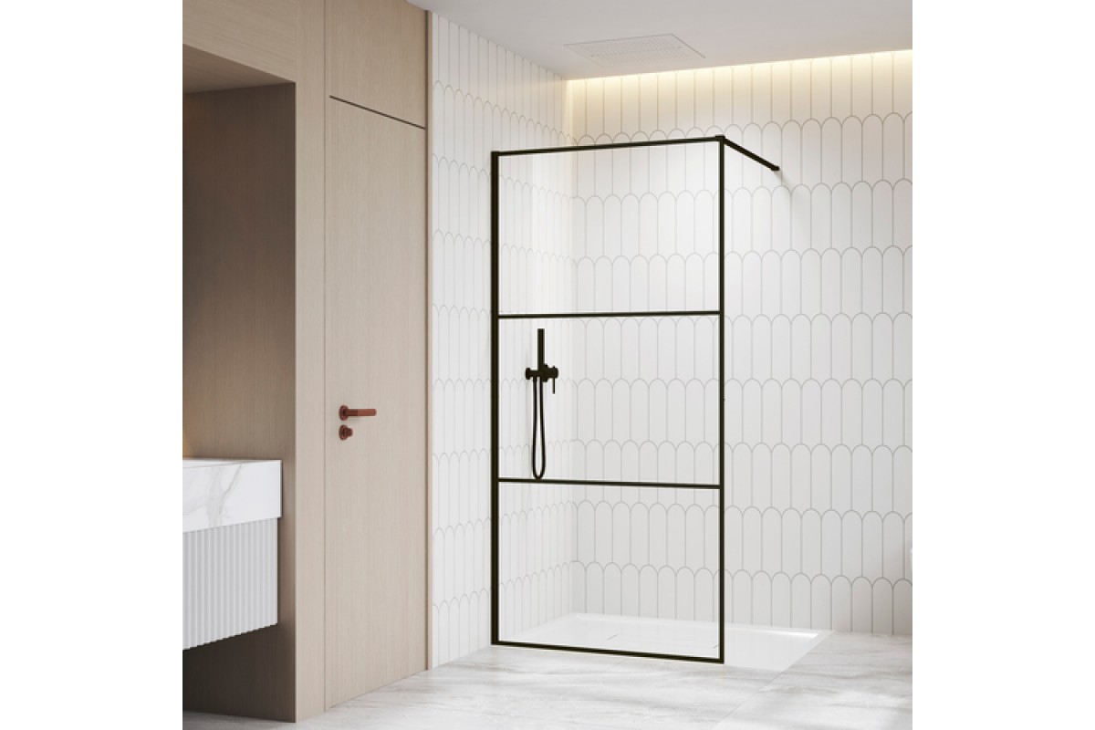 Душевая перегородка RGW 100x200 WA-09B стекло прозрачное, профиль матовый черный