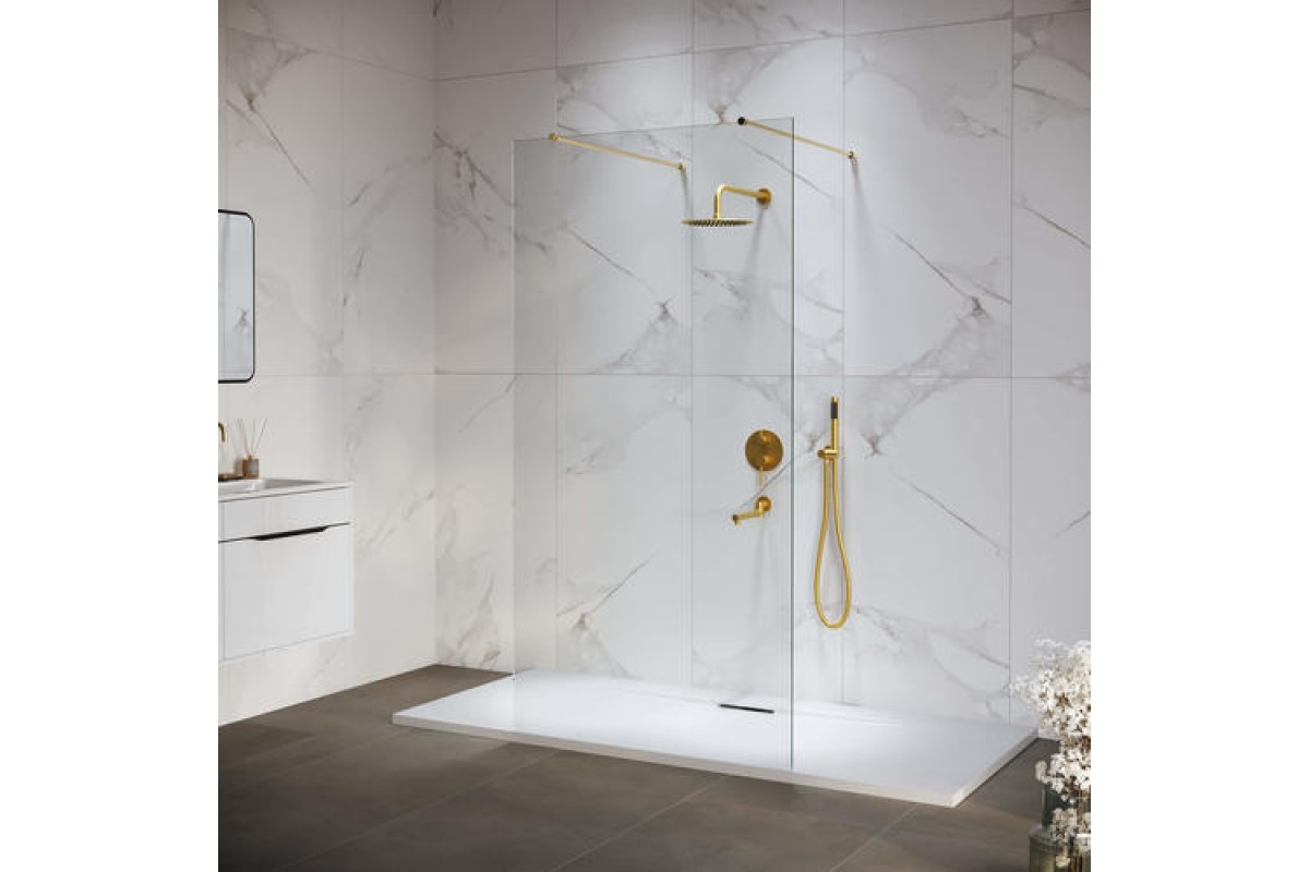 Душевая перегородка RGW WA-016-Gb неподвижное Walk In cтекло прозрачное 8 мм золото браш 35101610-16