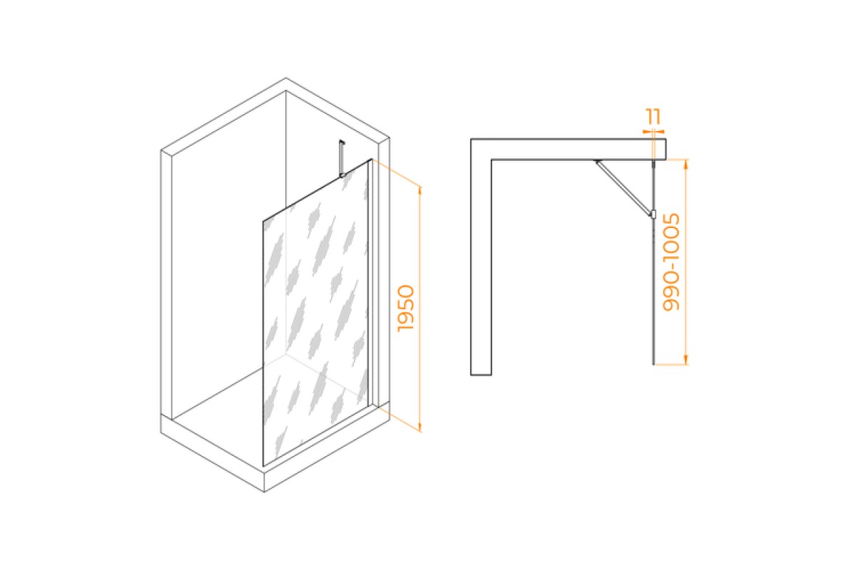 Душевая перегородка Walk-In RGW 100x195 WA-102B стекло тонированное, профиль черный