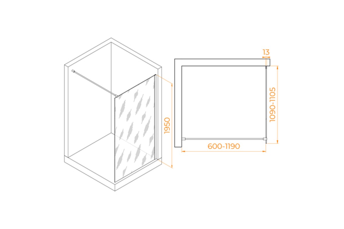 Душевая перегородка Walk-In RGW 110x195 WA-010 стекло тонированное, профиль хром
