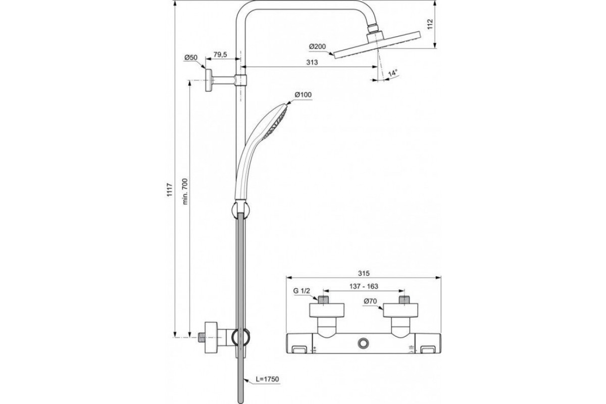 Душевая система Ideal Standard Ceratherm T25 Black A7545XG термостатическая