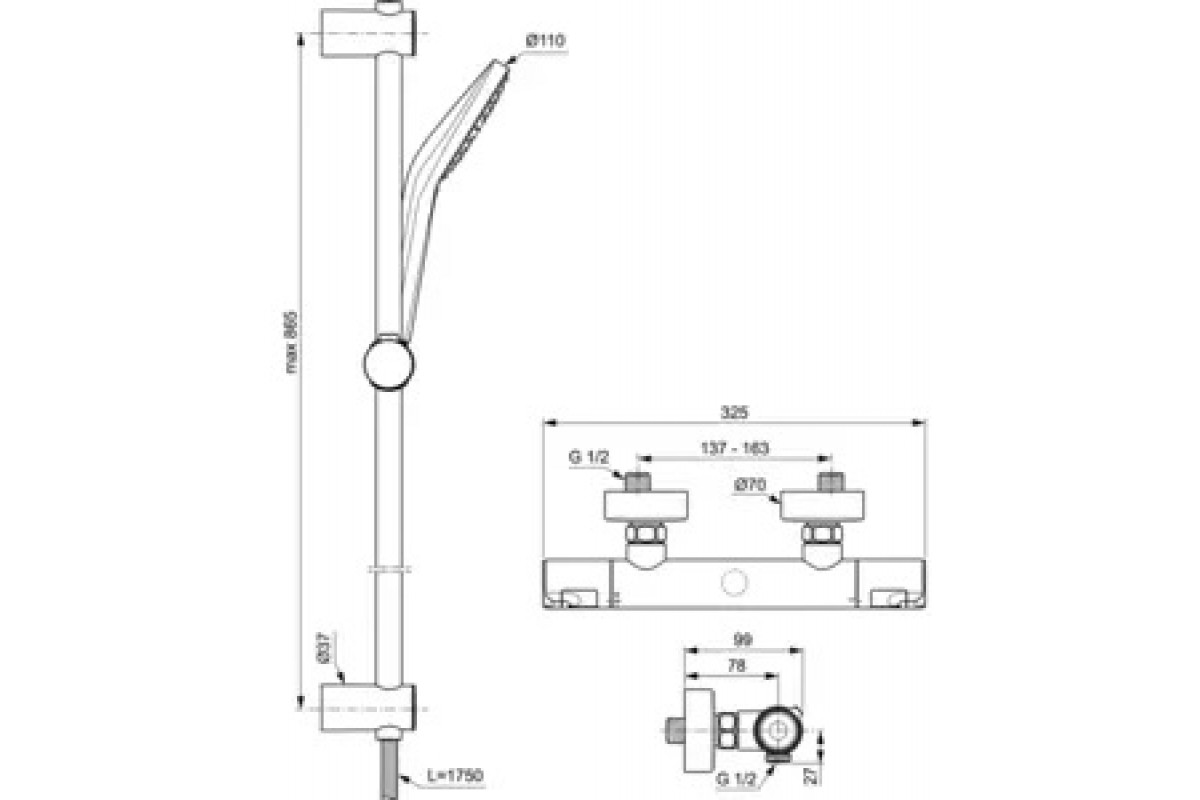 Душевая система Ideal Standard Ceratherm T50 A7218AA термостатическая с душевым гарнитуром