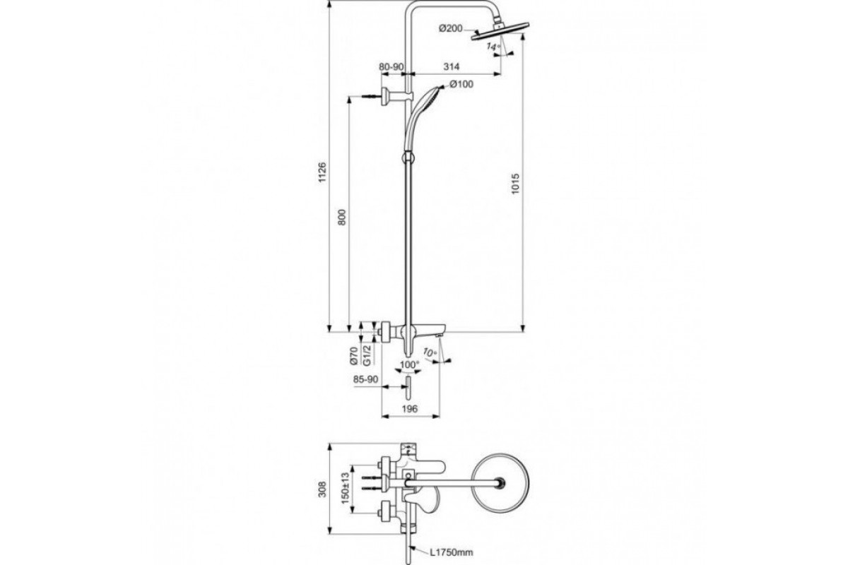 Душевая система Ideal Standard Idealrain Cerafine O Black BC525XG для ванны и душа