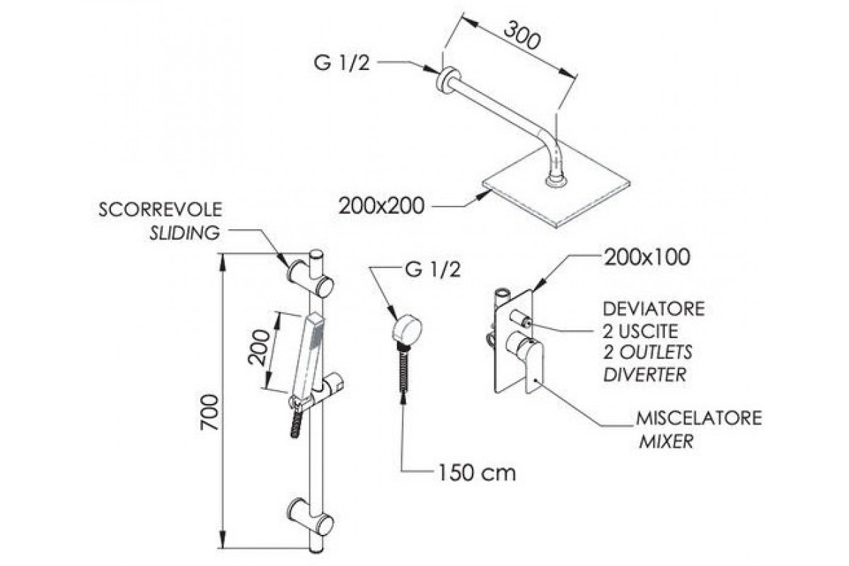 Душевая система Remer Infinity I09S07ODO, золото глянцевое