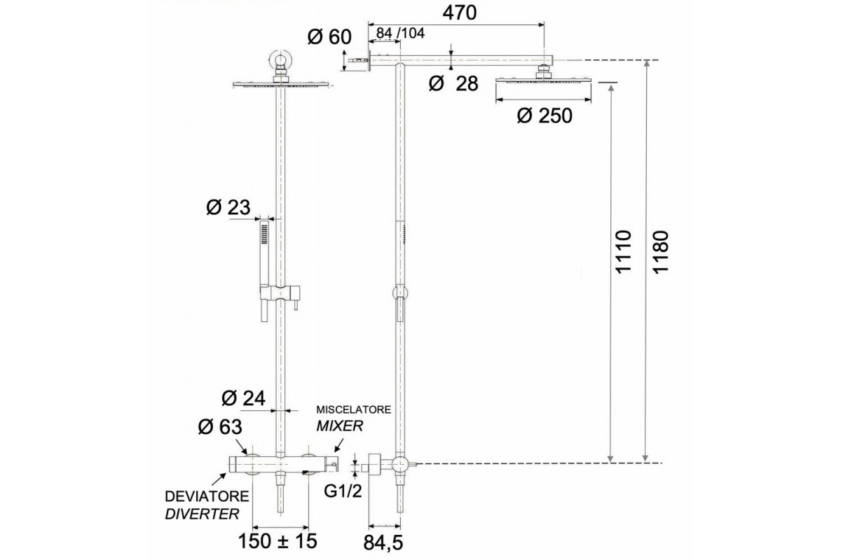 Душевая система Remer X Style INOX SSX37UFM25, нержавеющая сталь