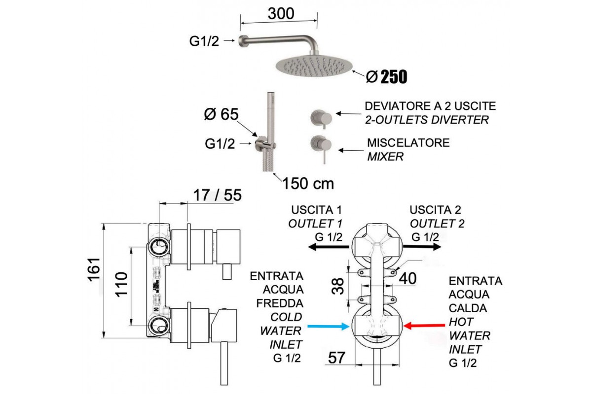 Душевая система Remer X Style INOX SSX92PS02UFM25, нержавеющая сталь