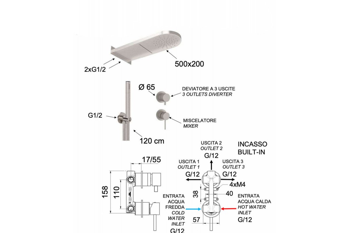 Душевая система Remer X Style INOX SSX93PS02MMCA, нержавеющая сталь