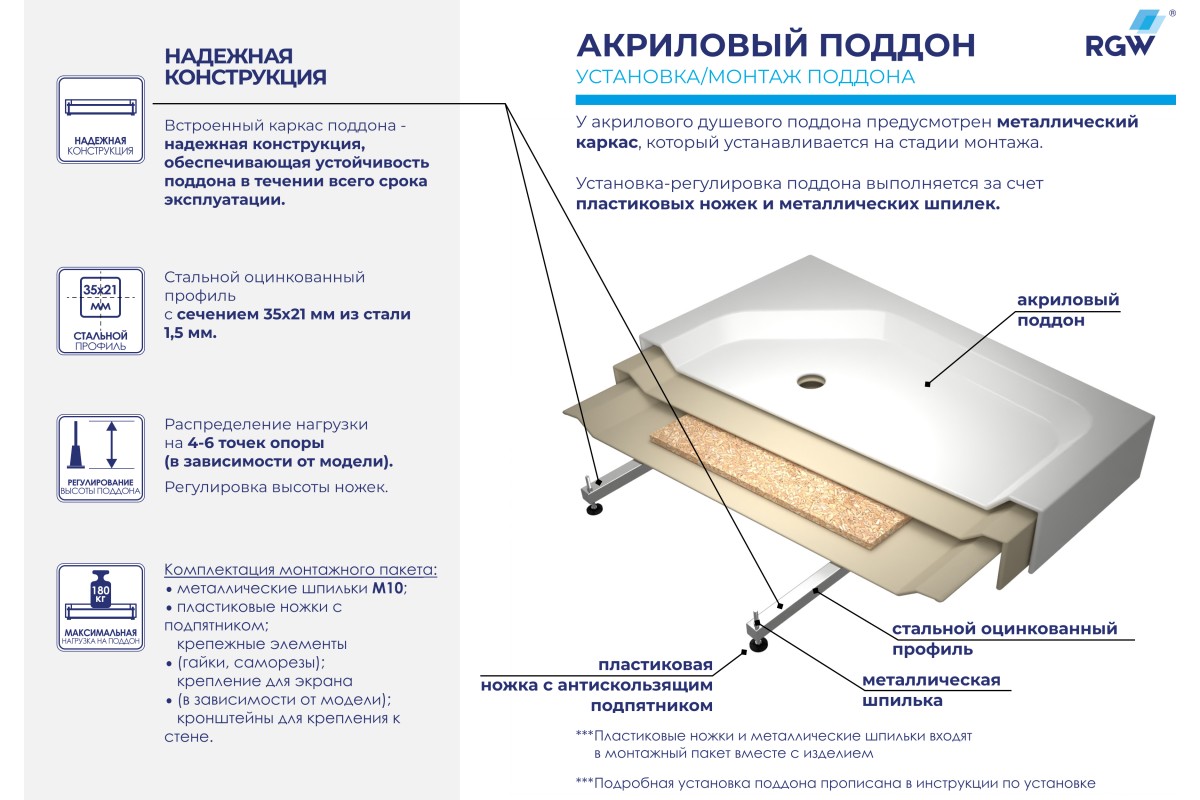 Преобразите вашу ванную комнату с душевыми уголками и поддонами от бренда RGW! Стильные, функциональные и долговечные решения для комфортного душа. Широкий выбор размеров, форм и дизайнов, устойчивых к влаге и нагрузкам. Доставка по всей Беларуси, га... Подробнее...Глубина поддона