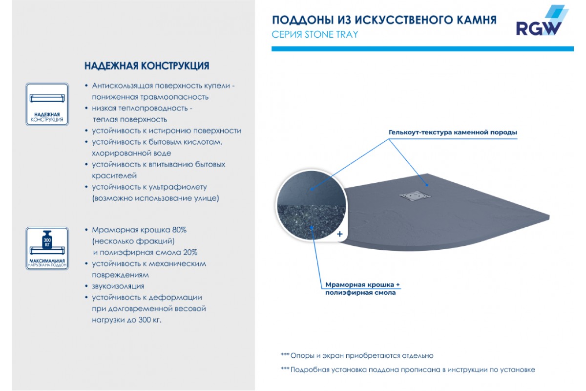 Душевой поддон полукруглый RGW ST/R-G графит \ серый искусственный камень cерия Stone Tray (90*90*2,5) 16153099-02