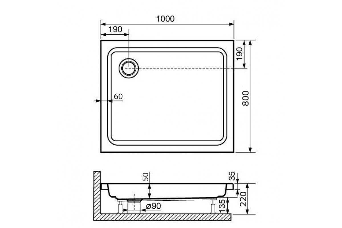 Душевой поддон прямоугольный RGW STYLE белый акрил cерия Acryl (80*100) 16180280-11