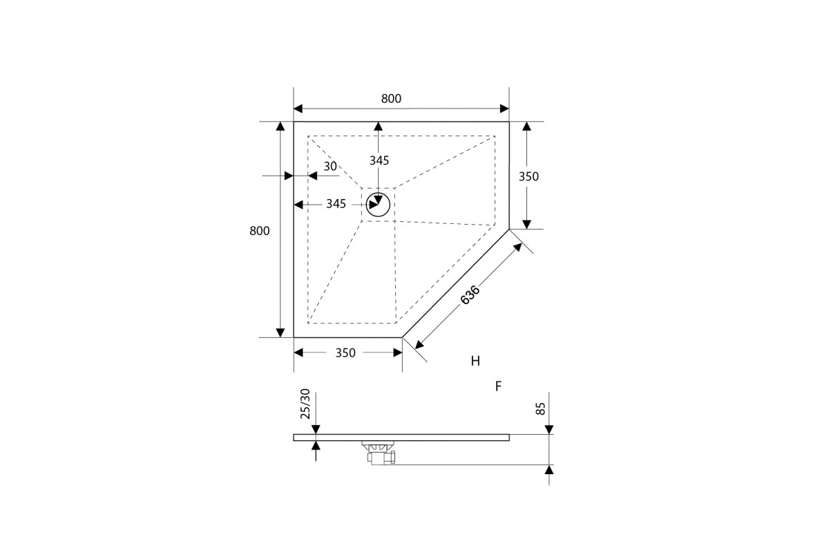 Душевой поддон трапеция RGW ST/T-W белый искусственный камень cерия Stone Tray (80*80*2,5) 16155088-01