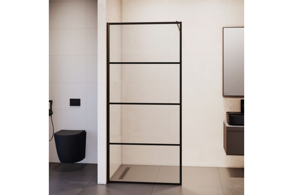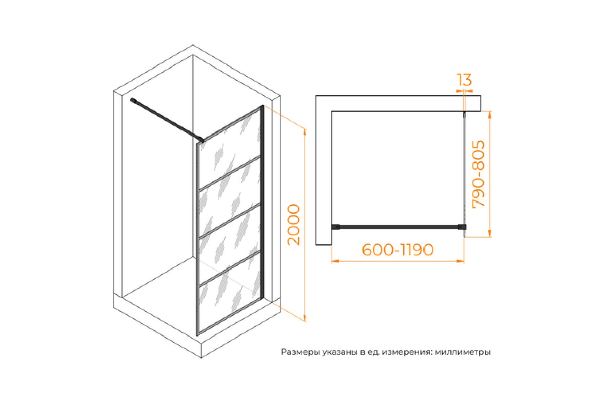 Душевую перегородку RGW WA-019B неподвижное Walk In cтекло прозрачное(шелкография), 8 мм 100*200 профиль черный