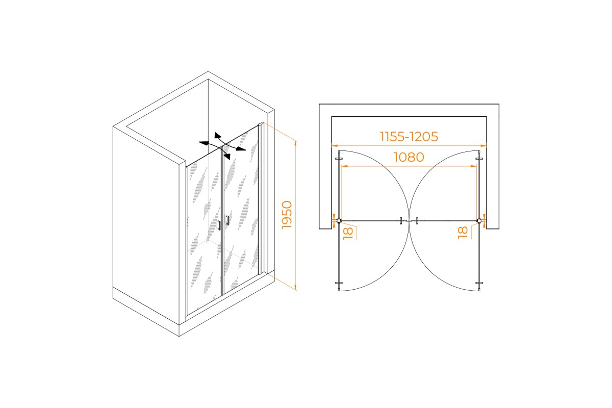 Распашная душевая дверь RGW PA-104-Gb 120*195 прозрачное стекло 6 мм 060810412-16