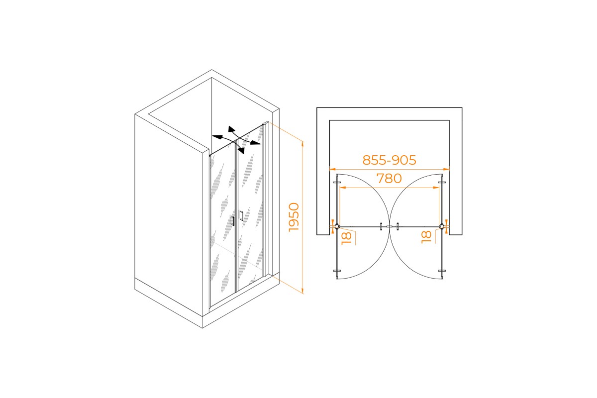 Распашная душевая дверь RGW PA-104-Gb 90*195 прозрачное стекло 6 мм 060810409-16