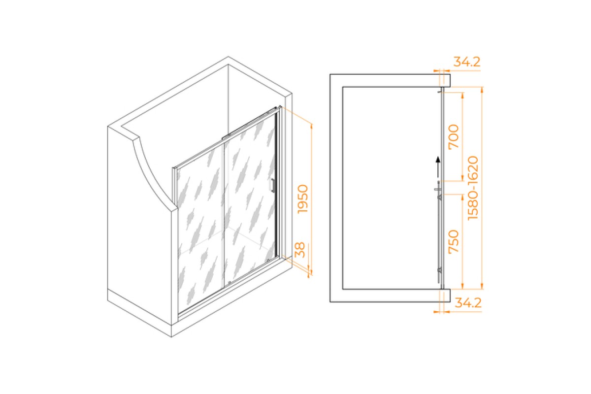 Раздвижная душевая дверь RGW PA-14 G 160*195 прозрачное стекло 6 мм 41081416-16