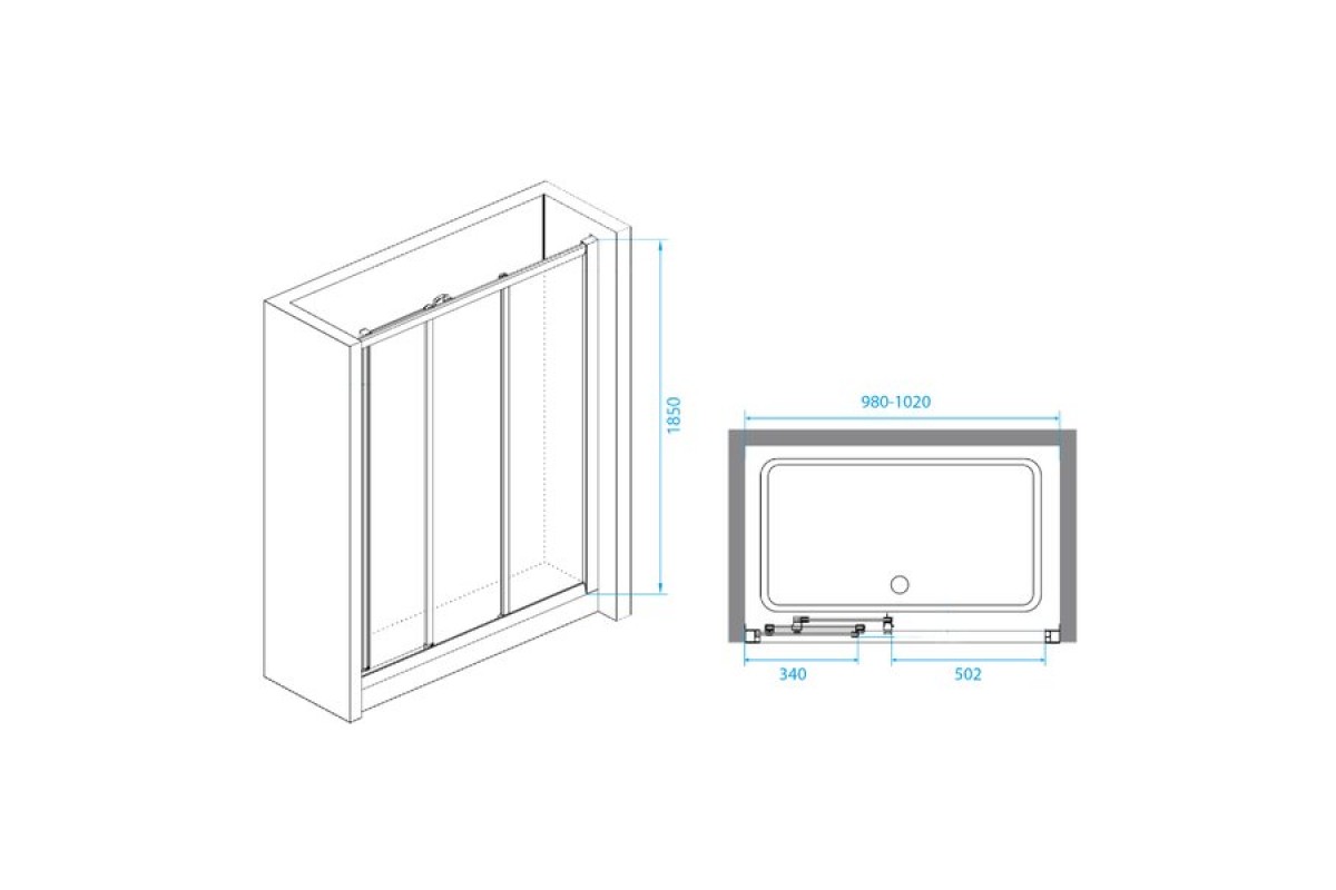 Душевая дверь RGW CL-111 410911110-11 раздвижная 100х185. Размер регулировки 980-1020 мм.