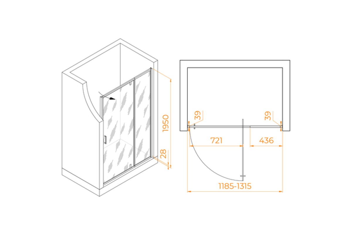 Душевая дверь RGW PA-008, 120 х 195 см, стекло матовое, профиль хром, 350800813-21