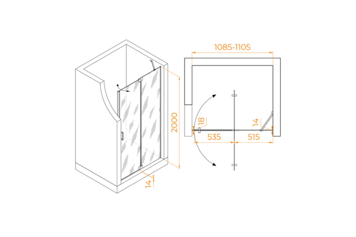 Распашная душевая дверь RGW HO-014-B 110*200 прозрачное стекло 8 мм 350601411-14