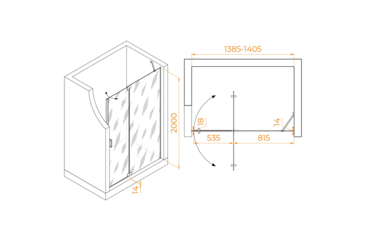Распашная душевая дверь RGW HO-014-Gg 140*200 прозрачное стекло 8 мм 350601414-110