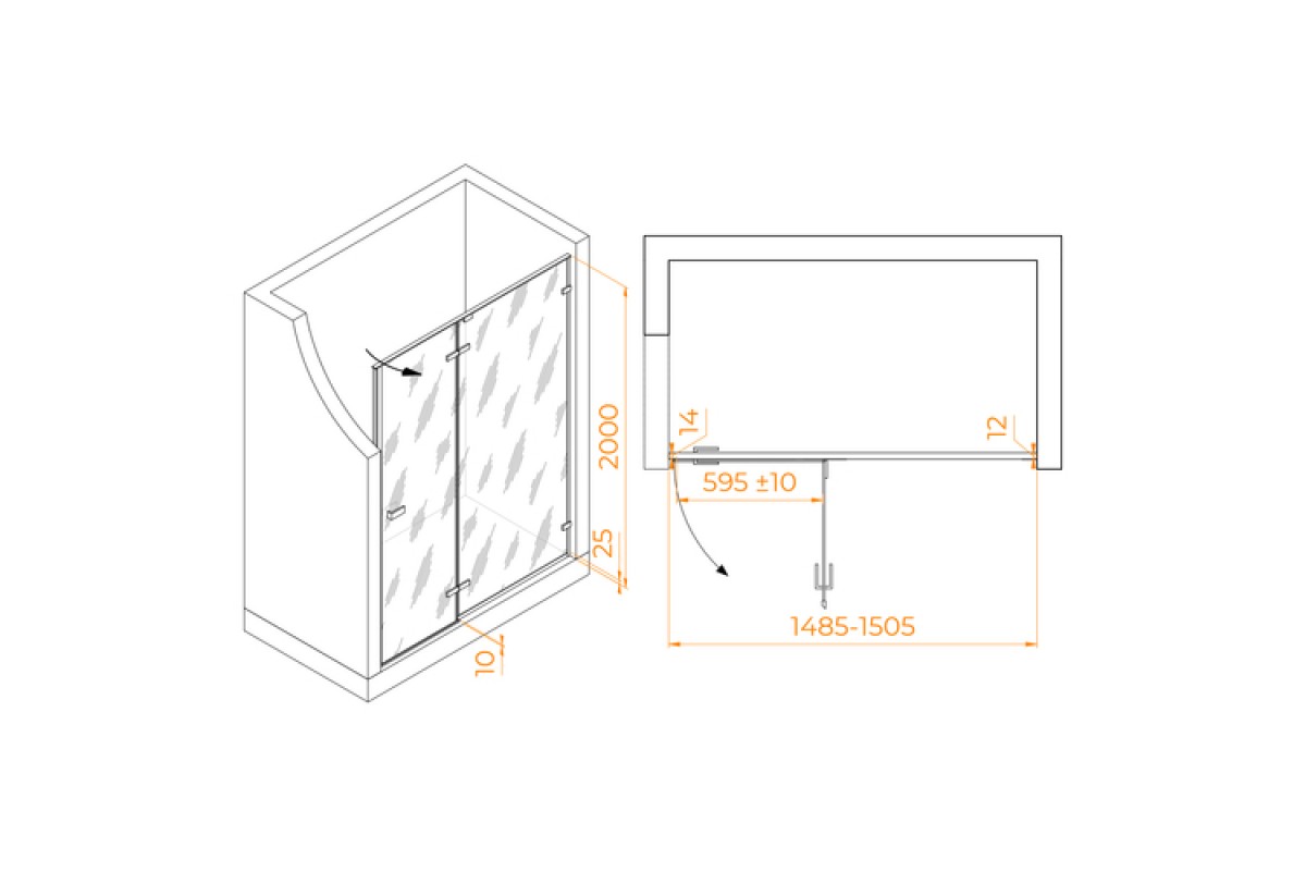 Распашная душевая дверь RGW SV-004-B 150*200 матовое стекло 8 мм 353200415-24