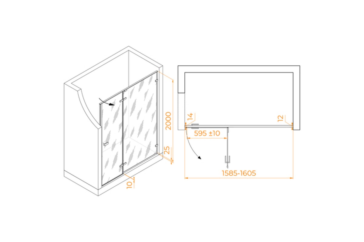 Распашная душевая дверь RGW SV-004-Gg 160*200 прозрачное стекло 8 мм 353200416-110
