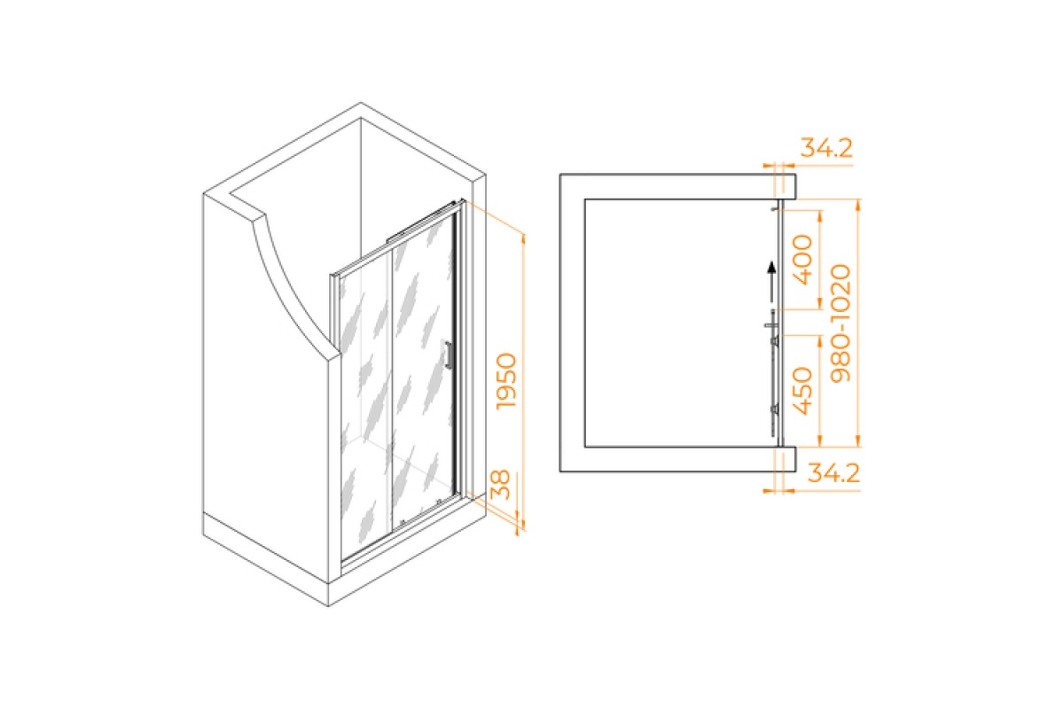 Раздвижная душевая дверь RGW PA-14 Gr 100*195 прозрачное стекло 6 мм 41081410-110