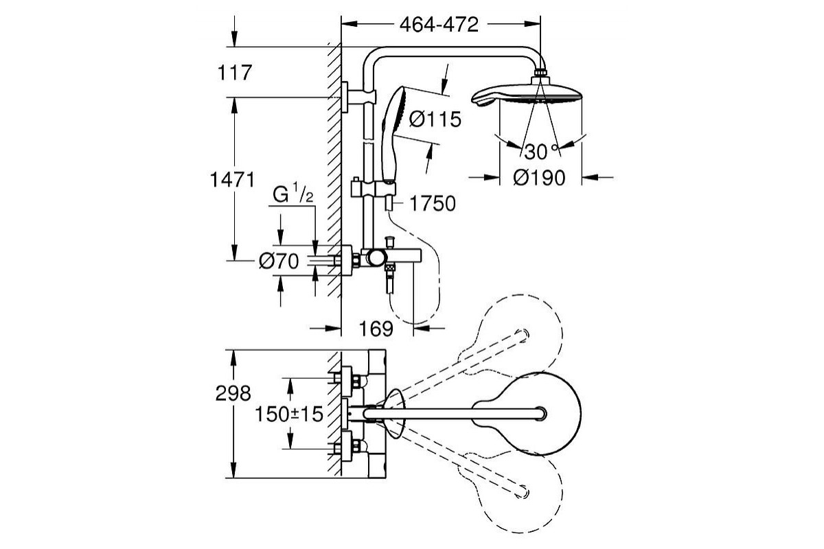 Душевая система с переключателем для настенного монтажа Grohe Rainshower 27058000