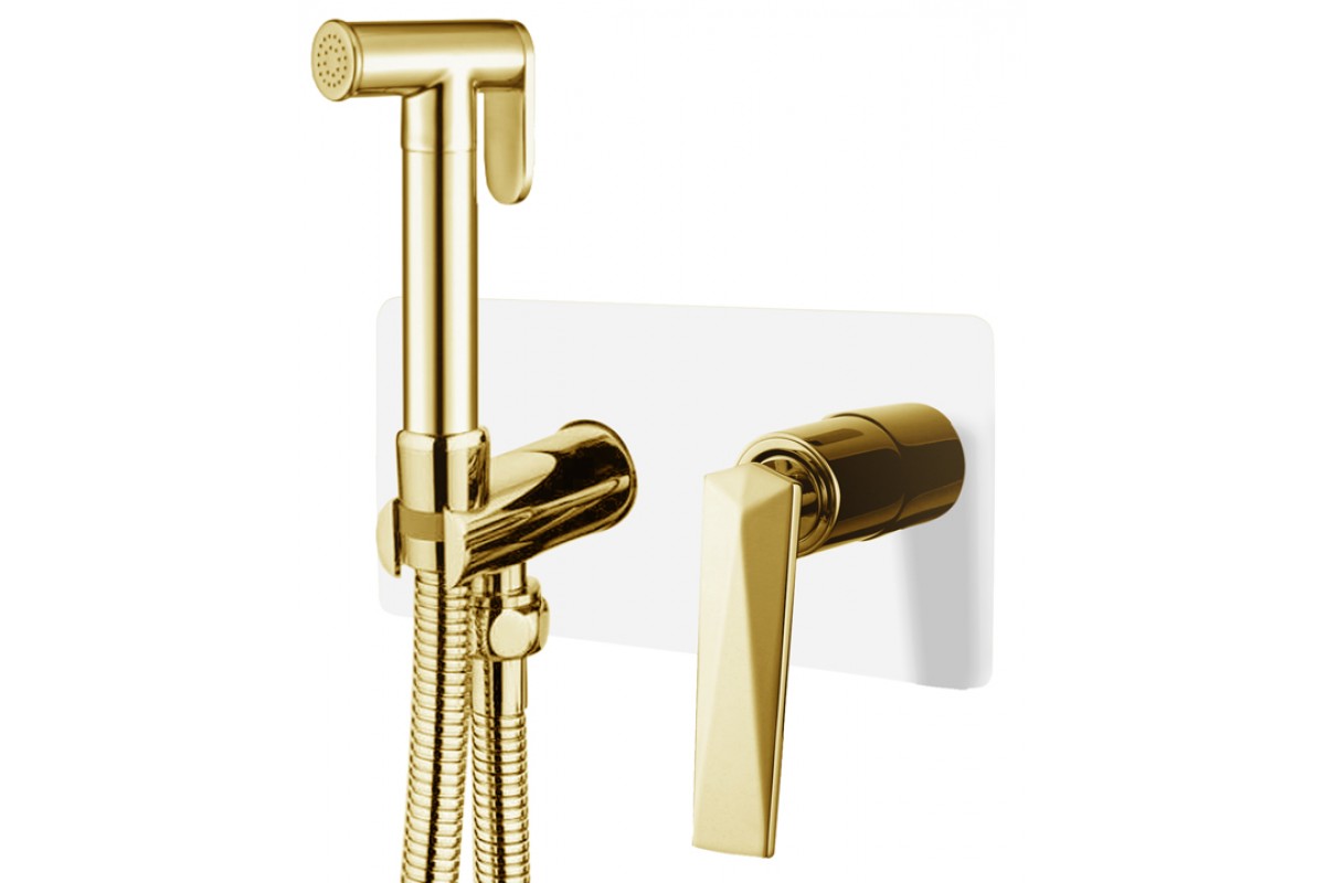 Boheme Гигеническая лейка со смесителем VENTURO белый + золото 387-W