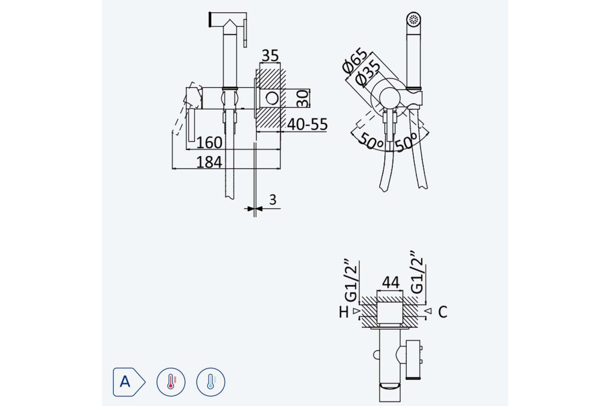 Гигиенический душ 107 861 1MG Gunmetal (лейка из латуни)