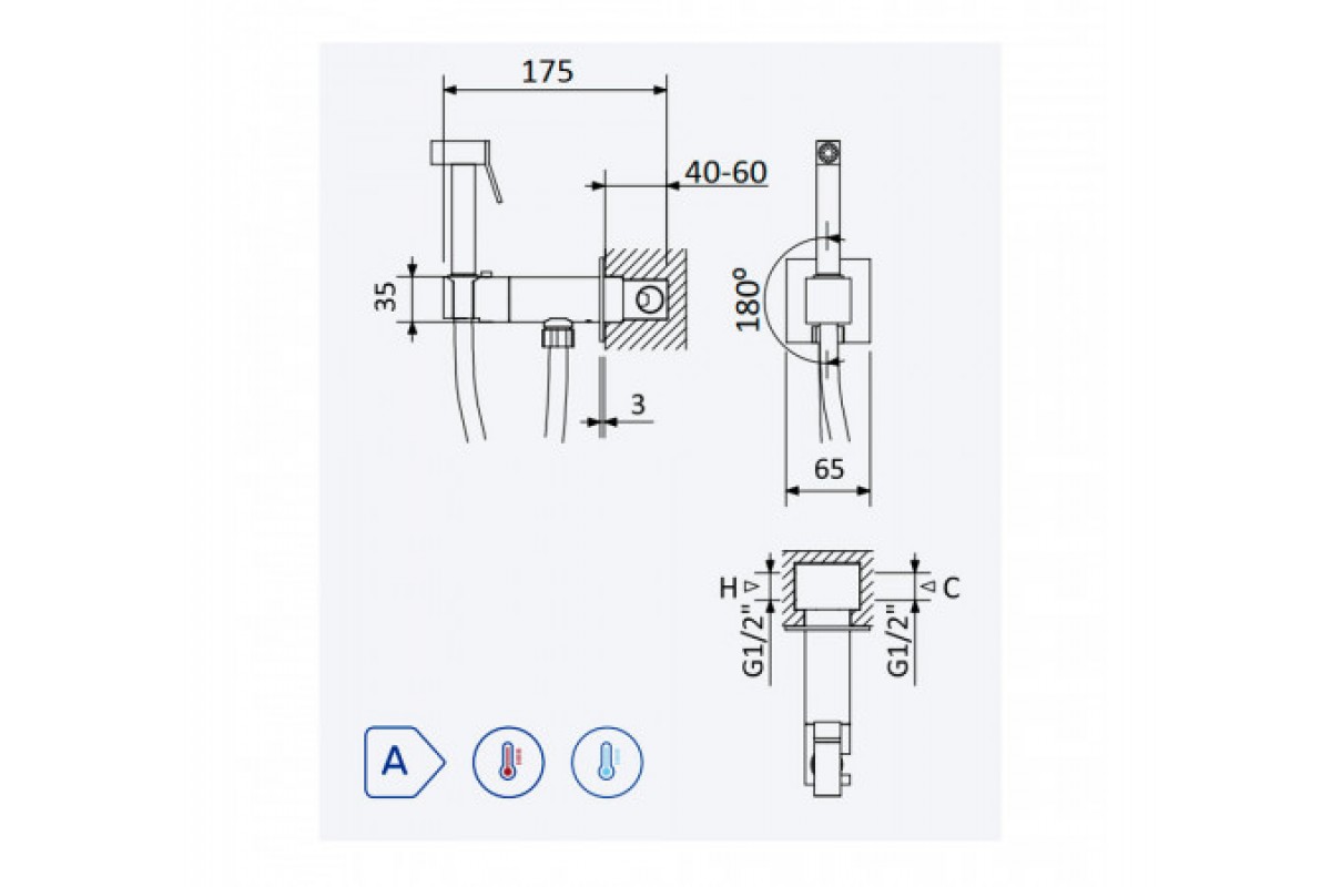 Гигиенический душ Bruma, угол открытия 180 °. Ручной душ из латуни - Quadra 145 110 9SR Sunrise