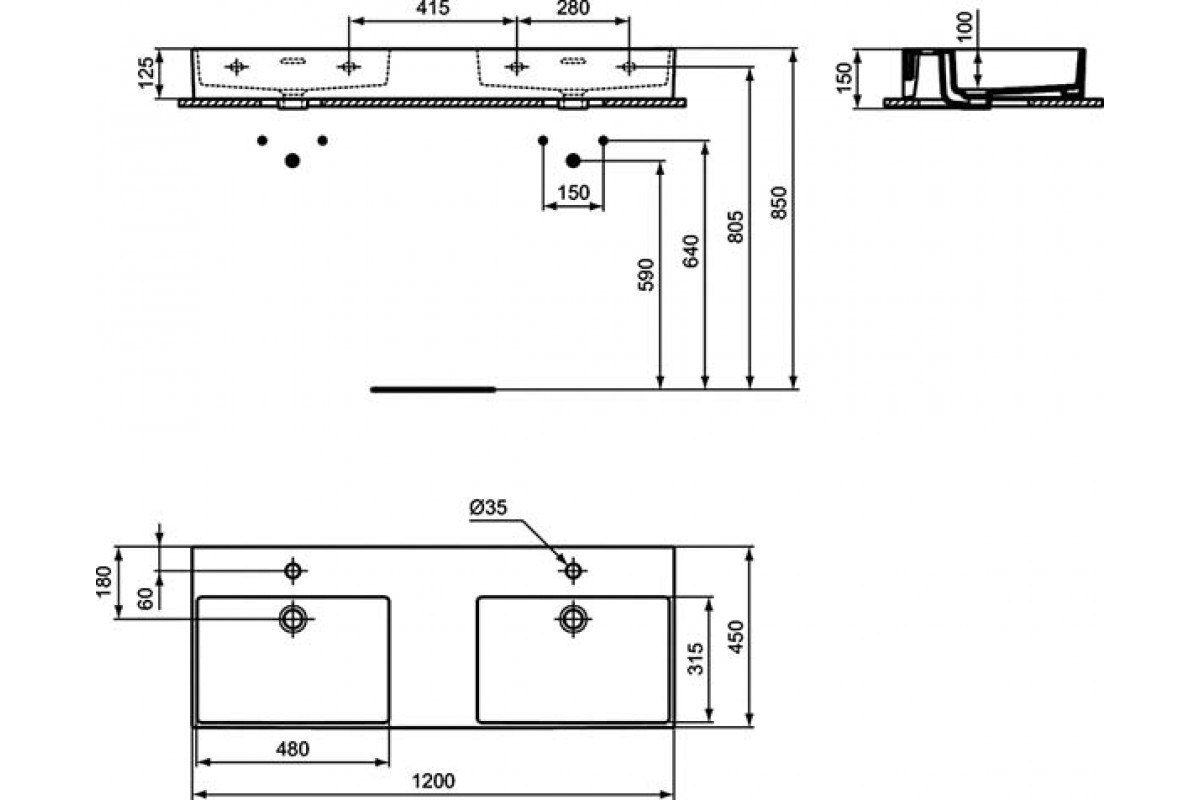 Двойной умывальник 120x45 см Ideal Standard Extra T373101